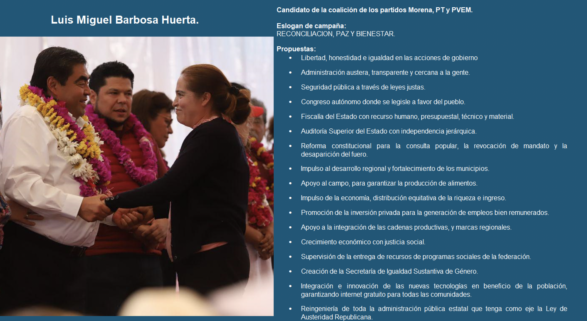 PERFIL DE LUIS MIGUEL BARBOSA HUERTA: Candidato de la coalición de los partidos Morena, PT y PVEM.