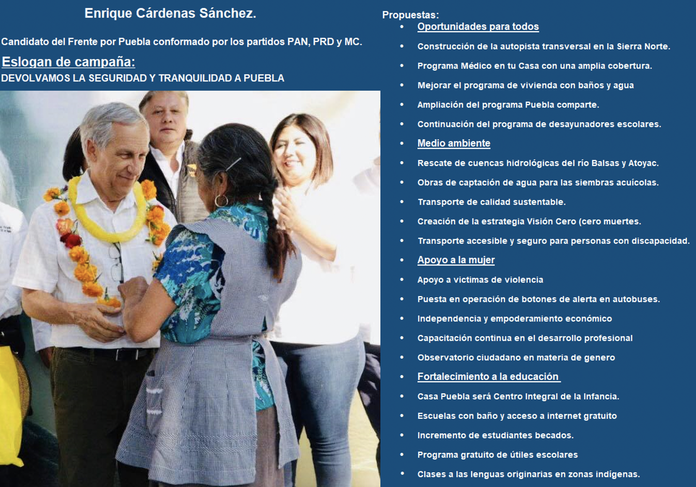 “(…) Soy el único candidato que tiene el privilegio de contar historias de trabajo entre los poblanos. Y esta campaña me ha servido para ir a saludar y cosechar todos los amigos que hemos sembrado y cultivado durante 27 años.